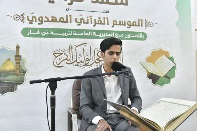 Le directeur de l'Institut du Saint Coran à Dhi Qar, affilié au complexe, M. Ali Al-Bayati, a déclaré : « La saison Mahdawi s'inscrit dans le cadre du programme (La consigne coranique gardée) détenu par l'institut, avec le but de commémorer les occasions d'Ahl Al Bayt (que la paix soit sur eux) en général, et la naissance du reste de Dieu sur terre, l'Imam Mahdi (que Dieu l'accélère) pour cette saison en particulier."