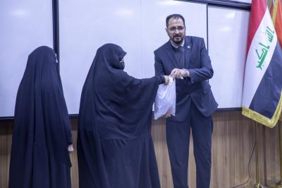 Dr. Abbas al-Deda al-Mousawi, Sayed Laith al-Mousawi, Sayed Kadhem Obada, the director of the Office of the Senior Official at the Al-Abbas's (p) shrine; Dr. Afdhal al-Shami, the president of the University, Dr. Gouda Nouri al-Jash'ami, in addition to the director of the Office of the Senior Official for women's Affairs; Mrs. Mona Wael, as well as the head of the division of Al-Kafeel women's religious schools; Mrs. Bushra al-Kenani, took turns honoring the students.