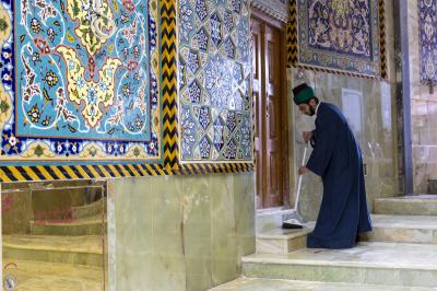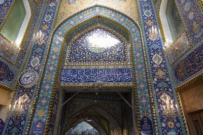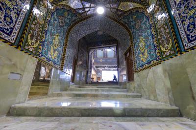 He added that" the door is decorated with Karbala Kashi, which is covered with gold, with inscriptions and decorations inspired by the ancient Islamic heritage, and in accordance with the sanctity of the place, "stressing that"the design has preserved the old Shape of the door and its architectural heritage in a new way."