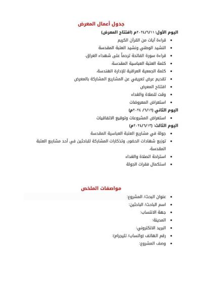 أعلنت العتبة العباسية المقدسة عن فتح باب المشاركة، أمام الباحثين في معرض النور للبحوث التطبيقية وبراءات الاختراع الوطنية في كربلاء.