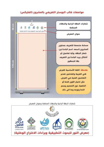 • أن يكون بوستر التعريف بالمشروع (الفليكس) حسب القالب الخاصّ بالمعرض.