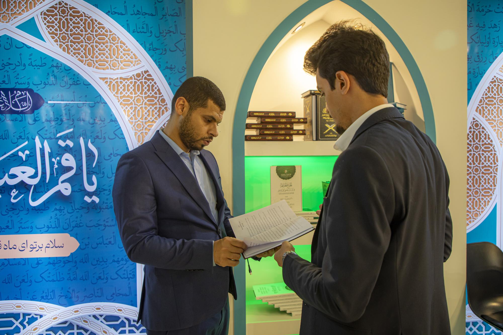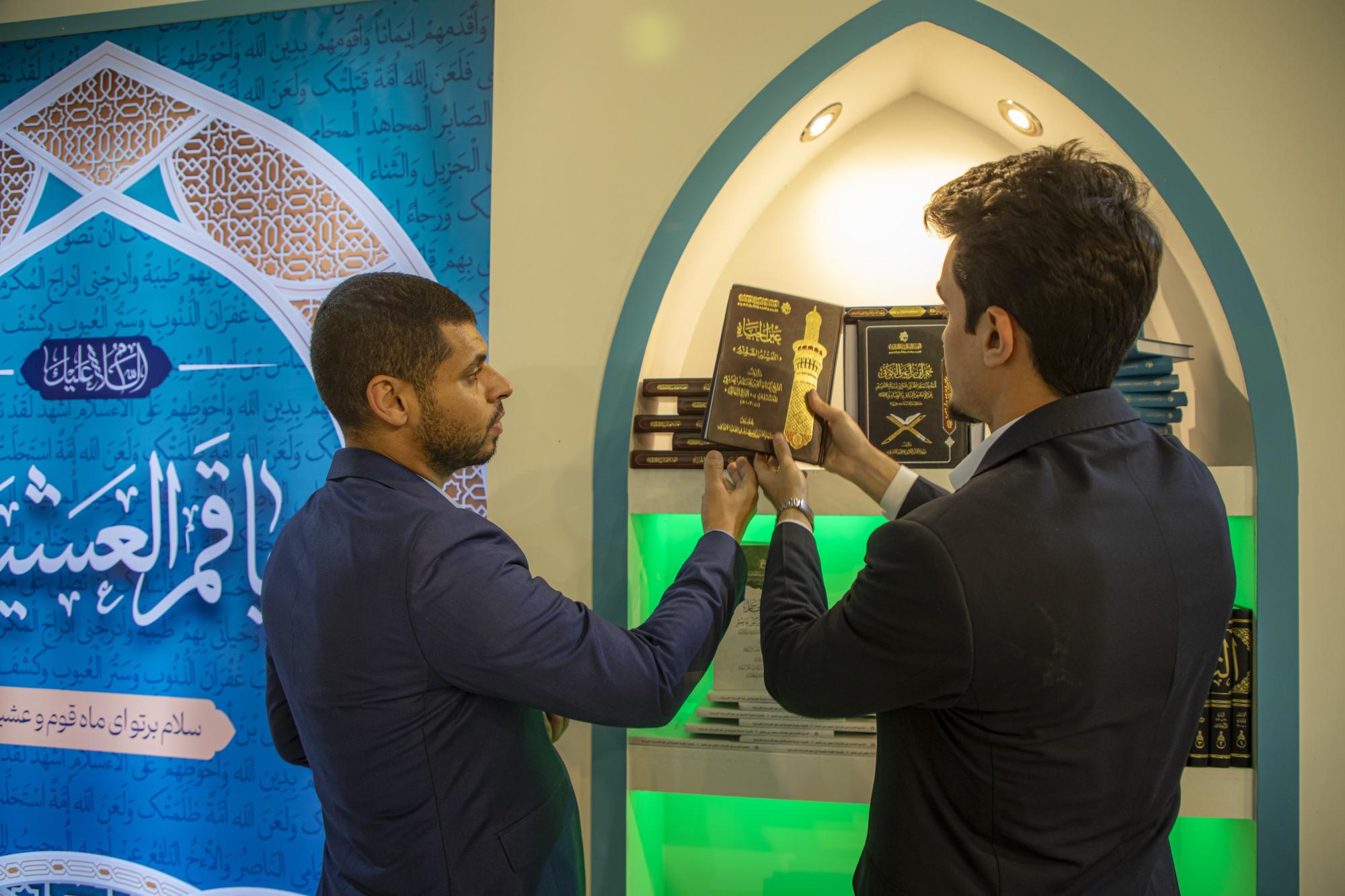 Die Besucher der Ausstellung drückten ihre Bewunderung für die Aktivitäten des Pavillons aus, darunter Ausstellungen, Wettbewerbe und interaktive Beteiligung, insbesondere die Glückwunschgeschenke des Schreins von Aba al-Fadl Al-Abbass (Friede mit ihm), und küssten sein ausgestelltes Ehrenbanner.