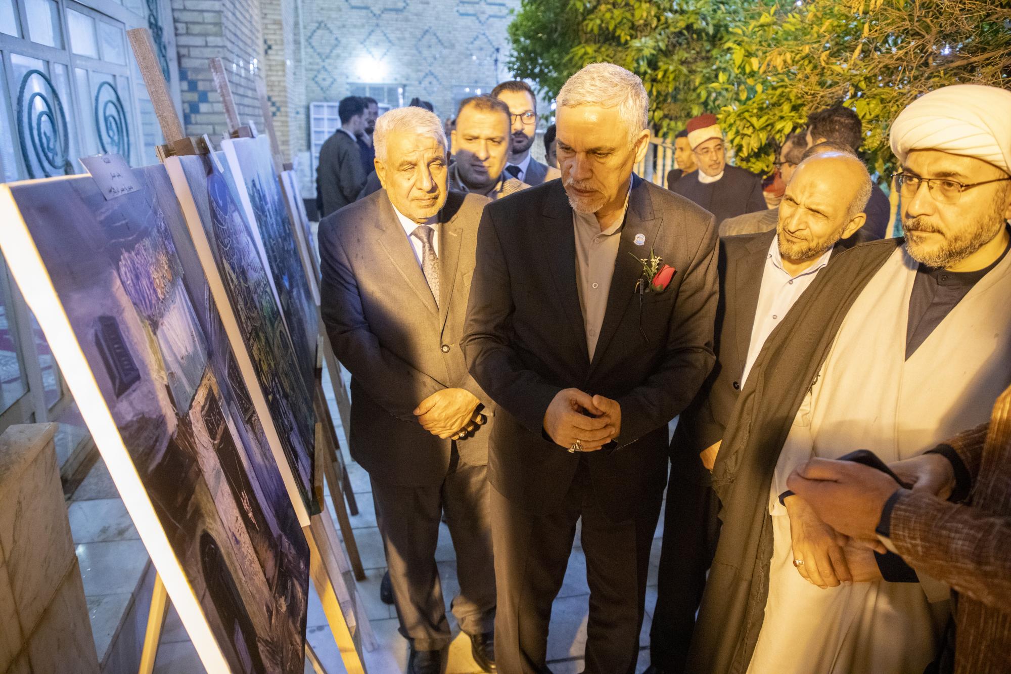 Es folgte eine Rede des Direktors des Kulturerbezentrums am Heiligen Kadhemitischen Schrein, Scheich Imad Al-Kadhimi, gefolgt von einem Auftritt einer Gesangsgruppe und einer Rede des Direktors der Al-Ain Stiftung für soziale Wahlfart, Babylon-Zweig, Alaa Al-Moussawi.
