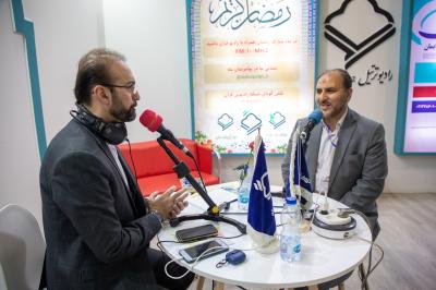 وأجرت الإذاعة لقاءً مباشرًا مع رئيس وفد المجمَع العلميّ للقرآن الكريم الدكتور علي الخفاجي، بيّن فيه فعّاليات الجناح المختلفة على مستوى عرض النتاجات الكتبية والتحقيقية والبرامج التعليمية والمسابقات، فضلاً عن الفعّاليات الدينية وغيرها.
