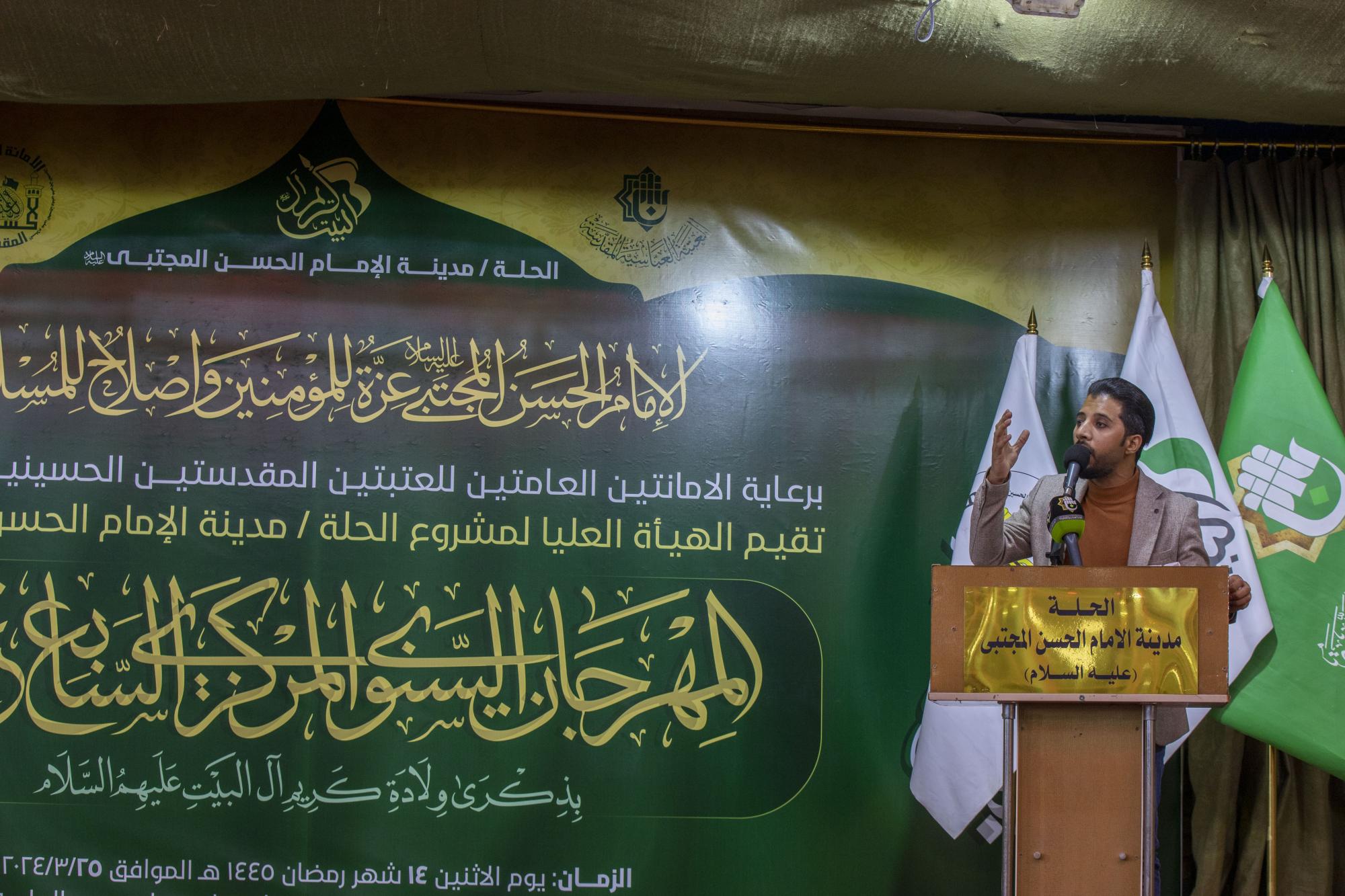 Le festival est organisé par l'Autorité suprême du projet Hilla, la ville de l'Imam Hassan al-Mujtaba (que la paix soit sur lui), sous le parrainage des Secrétariats généraux des sanctuaires saints de l'Imam Al Hussein et de son frère Aba Al Fadl Al-Abbas (paix sur eux deux), sous le slogan ( L'Imam Hassan al-Mujtaba est la gloire pour les croyants et la réforme pour les musulmans).