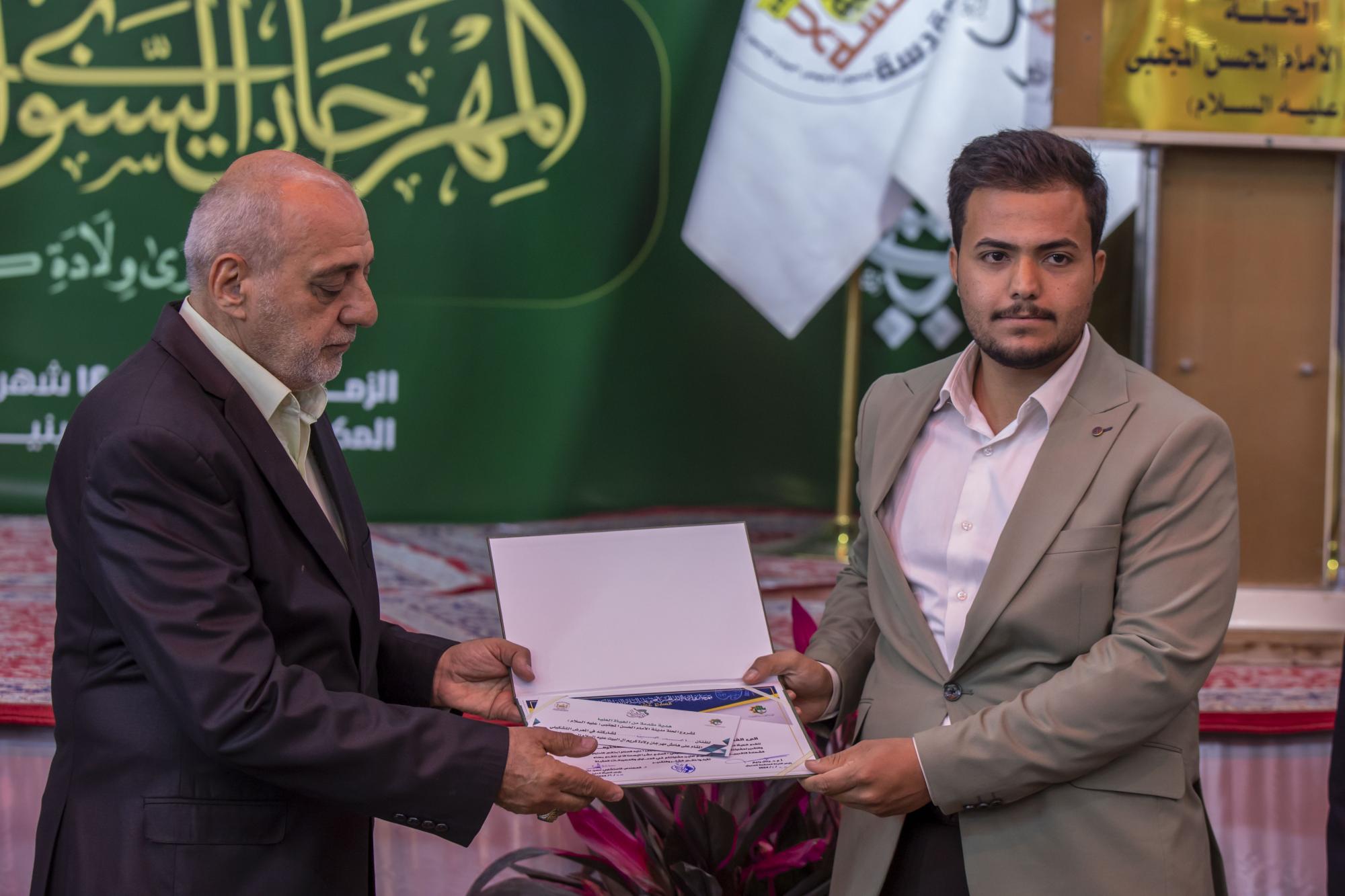 Il a ajouté : « Le troisième jour du festival comprenait la présentation par l'Association des Scouts d'Al-Kafeel, affiliée au Département des Affaires Intellectuelles et Culturelles, d'une représentation théâtrale incarnant la biographie de l'Imam Hassan (que la paix soit sur lui) et l'oppression, il a été exposé au cours de sa vie bénie, en plus de réciter des chansons et des poèmes à cette occasion.