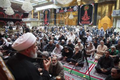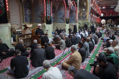 وأضاف أنّ "مجالس العزاء تُقام في ثلاثة أوقات، إذ يُعقد المجلس العزائي المركزي في الساعة التّاسعة مساءً، وعند الساعة الثّالثة بعد الظهر يُقام المجلس العلميّ، في حين يُعقد هناك مجلسٌ آخر قُبيل صلاة الظهر يُخصّص لزائري المرقد الطّاهر".
