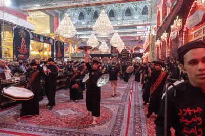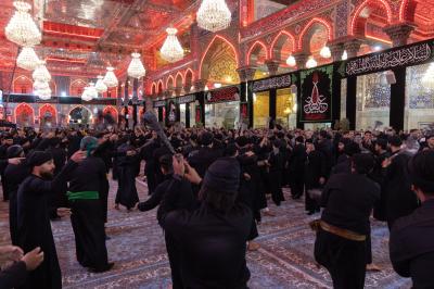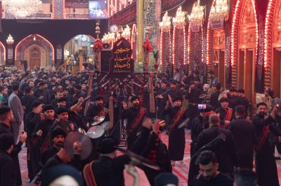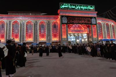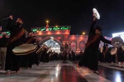 Die Beileidsprozessionen haben mit ihren jährlichen Zeremonien vor mehr als zwei Nächten begonnen und werden nach dem Jahrestag des Märtyrertodes fortgesetzt, und sie haben die Abendstunden als Datum für ihre Bewegung genommen und werden bis zum Morgengebet fortgesetzt, und die meisten der Prozessionen von Karbalaa nahmen an den Zeremonien teil.