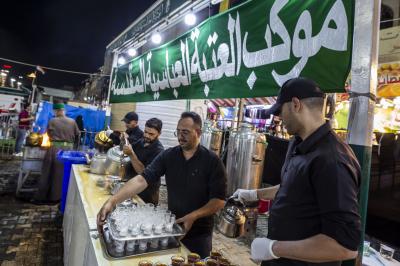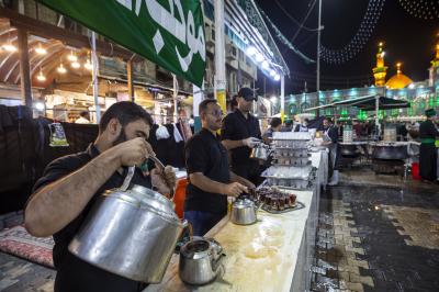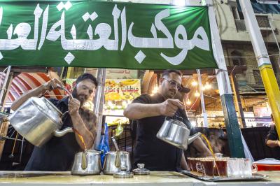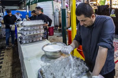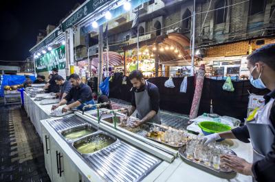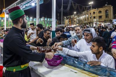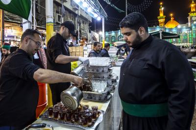 Maukibu ipo Jirani na malalo ya Abulfadhil Abbasi (a.s) mkabala na mlango wa Qibla, inaendelea na huduma ya kugawa chai kwa mazuwaru baada ya futari sambamba na kugawa vyakula vyepesi.