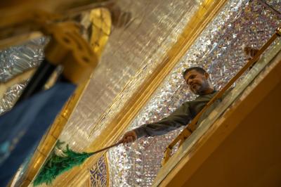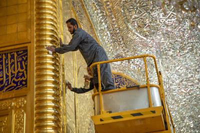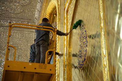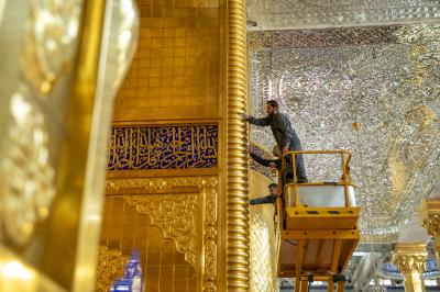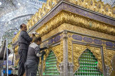 وأضاف أنّ الأعمال تأتي من أجل الحفاظ على بريق الشباك والإيوان وأجزائهما الذهبية، وجعلهما في حالة لمعان دائم، موضحًا أنّ "الأعمال تُنفذ بعد ختام كل موسم زيارة في ساعات الصباح الأولى وفق جدول زمني مُعد حتّى لا تؤثر على حركة الزائرين".