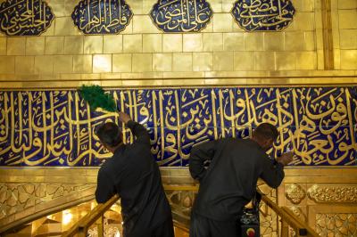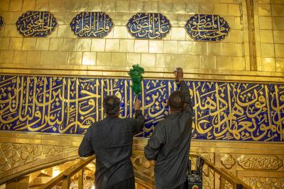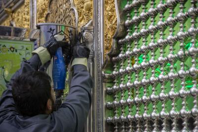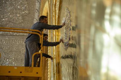 أجرت ملاكات شعبة الحرم الشريف في العتبة العباسية المقدسة أعمال إدامة لشباك مرقد أبي الفضل العباس (عليه السلام) وإيوان الذهب الكبير.