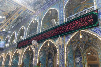 Die Beileidsbekundungen wurden in Form von Bändern gestaltet, die an den Iwans und Säulen im Inneren des Heiligen Schreins angebracht wurden, und die großen wurden an den Wänden und den Außeneingängen aufgehängt.