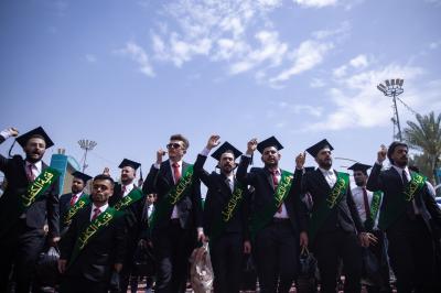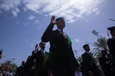 More than (4500) university students repeated the graduation oath and the Pledge of loyalty to the homeland and the service of its people at the shrine of Aba al-Fadl al-Abbas (peace be upon him), in the presence of the secretary general of the Al-Abbas's (p) holy shrine and a number of its officials and service and a gathering of the families of the graduating students.