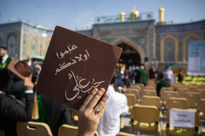 The families of the graduating students participating in the central graduation ceremony sent letters of thanks to the Al-Abbas's (p) Shrine for embracing the graduating students in the ceremony (the fourth batch).
