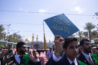 Mr. Hussein Shalal al-Yasiri, father of one of the students from Wasit province, said that "the joy of graduation for our sons was completed with the participation of their colleagues from various universities of Iraq at the shrine of Imam al-Hussayn and his brother Aba al-Fadl al-Abbas (peace be upon them).