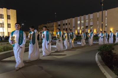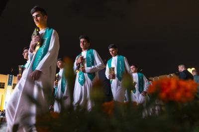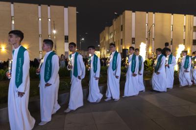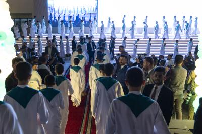 بدأ طلبة مجموعة العميد التعليميّة المشاركين في حفل التكليف الشرعي بالتوافد نحو منصّة الحفل.