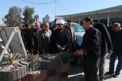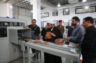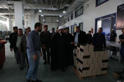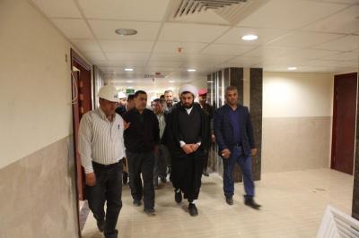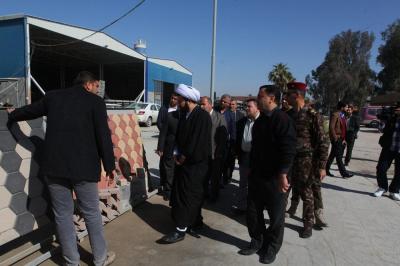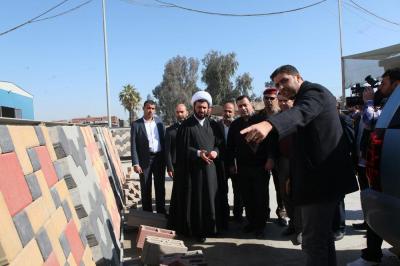 The visiting delegation was accompanied by the Deputy Secretary-General of the Al-Abbas's (p) holy shrine, the Engineer Bashir Mohamed Jassim and the head of engineering projects, Engineer Dea' Majeed Al-Sa'egh, who along with the supervising engineers have explained to Sheikh Al-Mas'udi the completion percentage reached by each project, and the aim of its creation and establishment. The visit included the side of the manufacture of the new holy grid of Aba Al-Fadl Al-Abbas (peace be upon him), the plant of blocks' production, the plant of the production of concrete, Muqarnas and pavement blocks, the project of Housing complex of the employees of the holy shrine, the project of Al-Kafeel Specialized Hospital, As-Saqa storing complex 2 and Dar Al-Kafeel for printing and publishing.