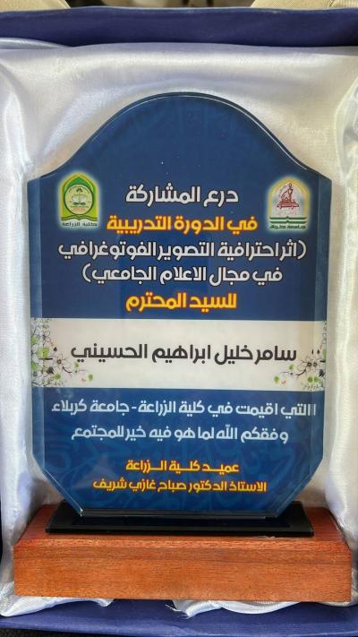ریاست دانشکده کشاورزی از آقای سامر الحسینی عکاس حرم مطهر از بابت ارائه این دوره تشکر و قدردانی نمود.