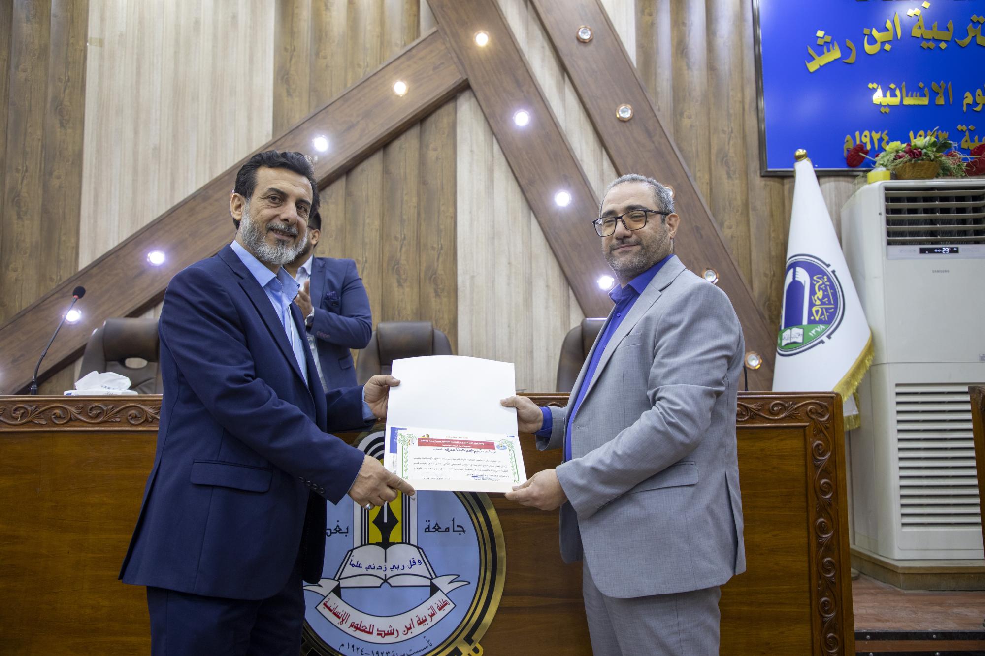 وانطلقت الفعاليّات بتلاوة آيات من الذكر الحكيم، أعقبها عزف النشيد الوطني، وقراءة سورة الفاتحة على أرواح شهداء العراق، ثم كلمة عميد كلية التربية إبن رشد للعلوم الإنسانيّة الدكتور علاوي سادر جازع.