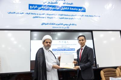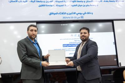 Die Konferenz stand unter dem Motto "Verwurzelung und Kreativität in der wissenschaftlichen Forschung" und fand unter Beteiligung der Universitäten von Bagdad, Kufa, der Medizinischen und Pharmazeutischen Universität von Jaber bin Hayyan, der Karbalaa Universität und der Al-Kafeel Universität statt.)