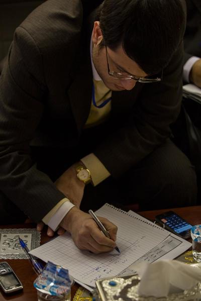 The contestants, who rushed to the podium, have undergone many tests under the supervision of a jury composed of international judges and readers, who are: Hassanein Al-Helu and Ali Al-Bayati for judging the tune, Rafi' Al-'Amiri and Mustafa Al-Ghalibi for judging the melody, Mahdi Qalandar and Ahmad Al-Najafi for judging the start and stop times, and Seraj Munir and Ahmad Al-Badri for judging the voice.