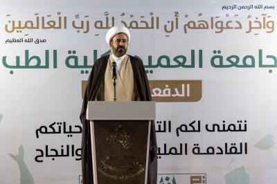 He added that"our joy is great and parallel to the joy of the parents of the students, with the graduation of the second batch of students from the Faculty of Medicine at Al-Ameed University".