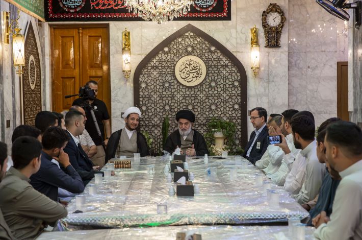 جاء ذلك خلال استقباله وفد مدرسة صاحب الزمان (عليه السلام) للعلوم الحوزوية في مدينة النعمانية بمحافظة واسط، واستماعه إلى شرح حول عمل المدرسة وما تقدمه في سبيل دعم المسيرة العلمية.