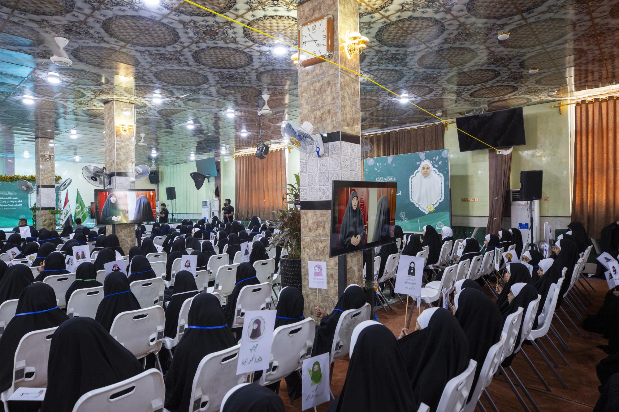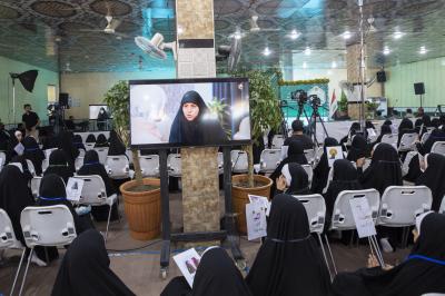 شهدت فعاليات حفل التكليف الشرعي لطالبات الدفعة الثانية من النسخة السادسة في قضاء عين التمر بمحافظة كربلاء، عرض فيلم تعريفي بمشروع (الورود الفاطمية).