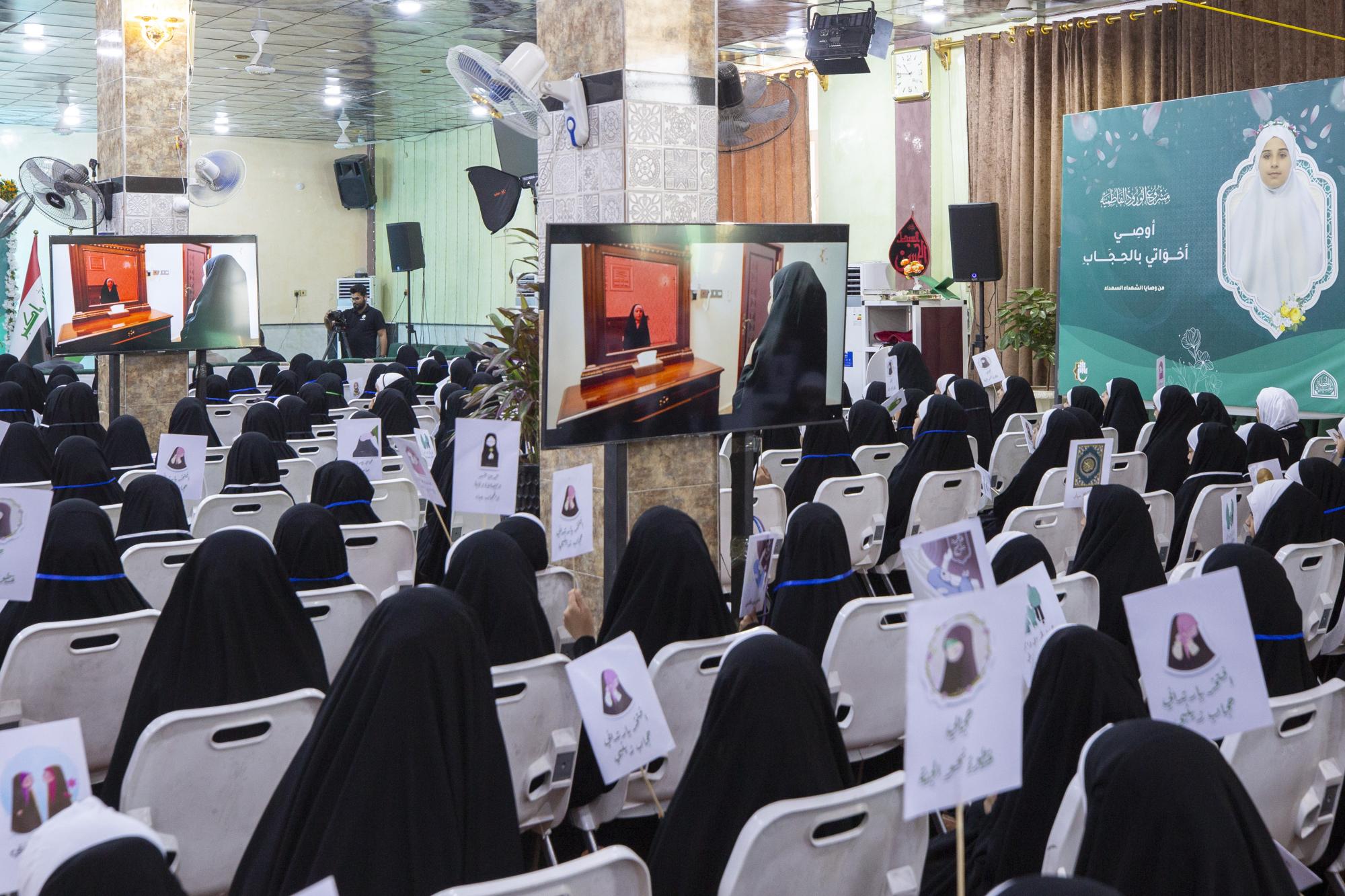 وتقيم الحفل شعبة الخطابة الحسينية النسوية في العتبة العباسية المقدسة، بالتعاون مع المديرية العامة للتربية في محافظة كربلاء، ضمن مشروع (الورود الفاطمية) بنسخته السادسة، تحت شعار (من نهج الزهراء حجابي وبزينب اقتدائي)، وبمشاركة أكثر من (300) طالبة.