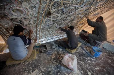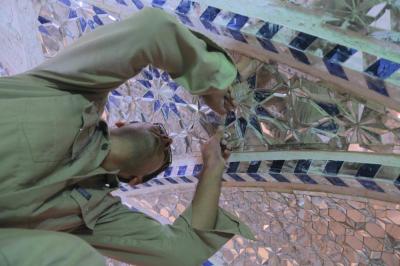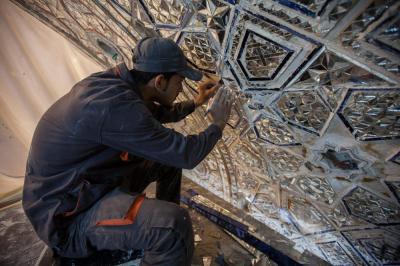 Adding: "According to the designed plan of this project, the walls and ceilings will be covered with diverse geometric shapes to form a glass mosaic, which are made up of stalactites, -Islamic and plant- engravings and geometric shapes, using the best types of mirrors in the region, which are of consistent colours and symmetrical to the inner design of the holy shrine. Important quantities of this glass were imported from international origins to be designed and cut into beautiful geometric patterns within the mirrors and engravings unit at the holy shrine."