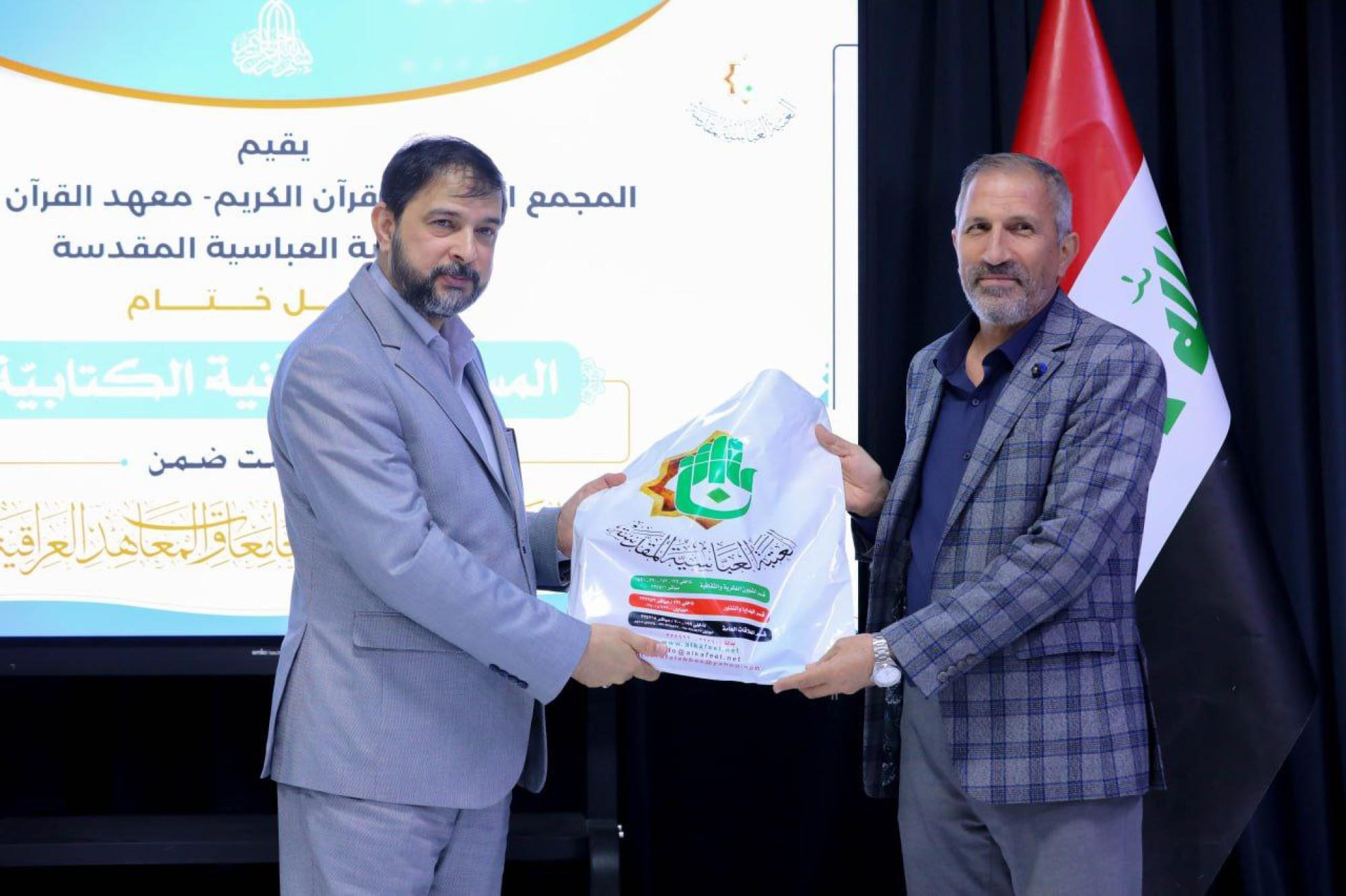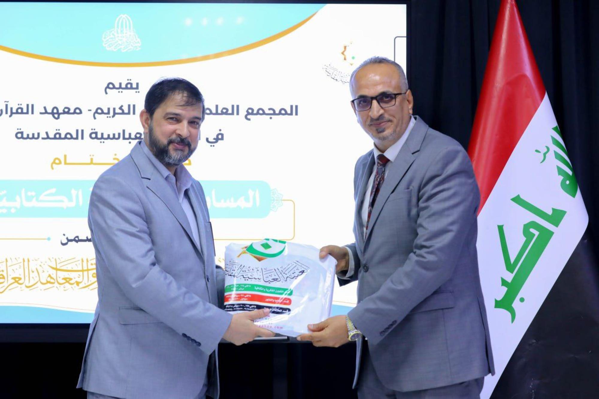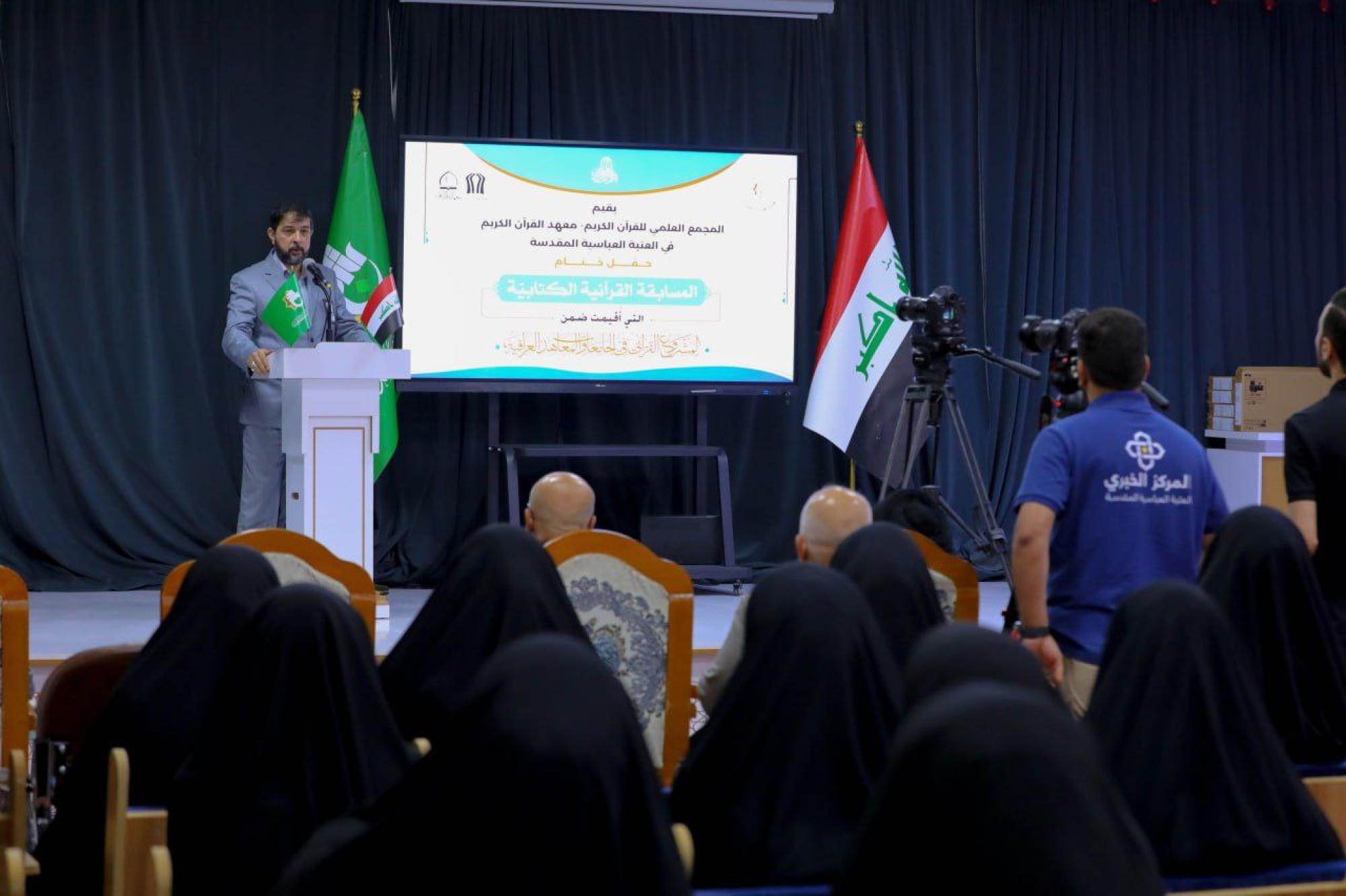 Concernant les détails du concours, le directeur de l'Institut du Saint Coran affilié à l'Académie, Cheikh Jawad Al-Nasrawi, a déclaré : « L'Institut a organisé un groupe d'activités coraniques pour différents groupes de la société, y compris les jeunes, Les jeunes et les jeunes. La plus importante de ces activités est le projet coranique dans les universités et les instituts, qui accueille aujourd'hui la cérémonie de clôture pour les participants au concours d'écriture".