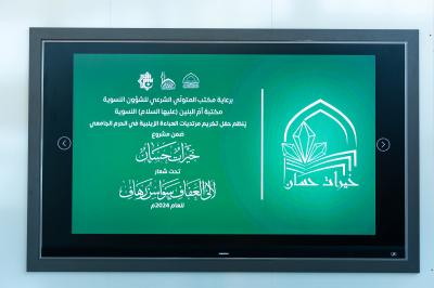 ونظّمت الحفل مكتبة أمّ البنين النسوية في العتبة المقدسة ضمن مشروع (خيرات حسان) وتحت شعار (لآلئ العفاف، سواسن رهاف).
