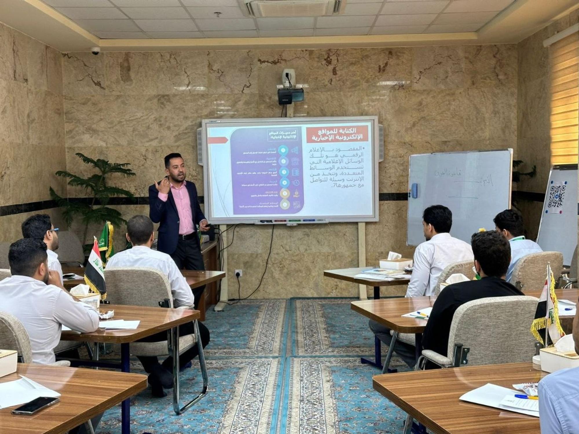 قدم قسم الإعلام في العتبة العبّاسيّة ورشة تخصصيّة بعنوان: (الكتابة لمواقع التواصل الرقمي) لعددٍ من منتسبي قسم الشؤون الفكريّة والثقافية في العتبة المقدسة.