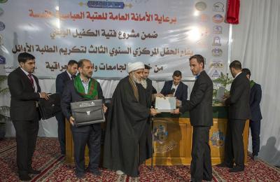 To continue its support to the distinguished and talented people of this country, especially students, for the third year in a row the Al-Abbas's (p) holy shrine has held within its program of the Al-Kafeel national youth represented by the Division of University relations of the Department of relations, a ceremony to honour 300 of the top students of universities and institutes of Iraq for the academic year (2013/2014).