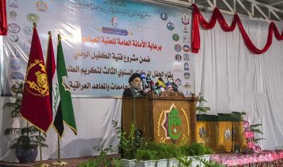 Then Sayed Al-Safi called the students to not let themselves to be a cheap tool used to sell the homeland, advising them: "Dear sons and daughters, take a good care of Iraq, and dear brothers University professors, these students are a responsibility, which you must give a special care in accordance with the approach that leads to the sound life, love of the homeland and the acceptance of the other. In fact, we need everyone's efforts as we pass though a great crisis and affliction names "The terrorists of ISIS" may God help us to defeat them."