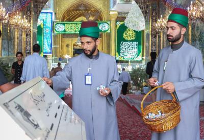 The staff of the division of Sayed servants at the Al-Abbas's (p) holy shrine presented blessed gifts to visitors on the occasion of the birth anniversary of Imam ar-Redha (peace be upon him).