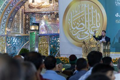 ثم تحدث فيها عن مراحل من حياة الإمام الرضا (عليه السلام) ومنزلته ومكارم أخلاقه، فضلًا عن المصاعب التي واجهته (عليه السلام) بكل تفاصيلها.