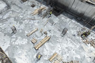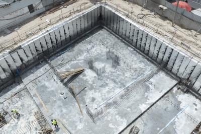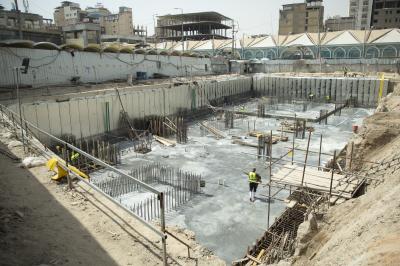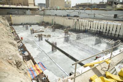 Il a ajouté : "Le projet est construit sur une superficie de (4 000 mètres carrés) et comprend un sous-sol, un rez-de-chaussée, des étages de service et six étages. Les travaux de renforcement sont terminés et la première section des fondations du bâtiment a été coulée d'une superficie de (1300 mètres carrés)."