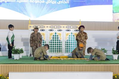 وبعد الانتهاء من تقديم العروض المسرحية أُجرِيت فعّالية تسليم الراية، من أطفال مرحلة التمهيدي الذين سيلتحقون بالدراسة الابتدائية، إلى أطفال مرحلة الروضة، وتقديم عرضٍ فيديوي تضمّن تفصيلاً للتحضيرات والاستعدادات لحفل تخرّج رياض مجموعة العميد التعليمية، ليُختتم الحفل بصعود الأطفال على المنصّة وأداء نشيدٍ بعنوان (مَن مِثلي).