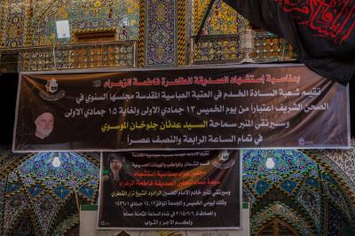 اختتمت العتبةُ العباسيةُ المقدّسة مساء أمس السبت (15جمادى الأولى 1436هـ) الموافق لـ(7شباط 2015م) برنامجها العزائيّ الخاص بإحياء ذكرى شهادة بضعة الرسول وروحه التي بين جنبيه السيدة الصدّيقة الكبرى فاطمة الزهراء(عليها وعلى أبيها أفضل الصلاة وأتمّ التسليم)، البرنامج تنوّعت فقراتُه وفعالياتُه التي انطلقت منذ اليوم السادس من شهر جمادى الأولى مع انطلاق فعاليات مهرجان موسم الأحزان الفاطمي الذي يقيمه قسمُ الشعائر والمواكب الحسينية في العتبتين المقدّستين الحسينية والعباسية، والذي احتوى بدوره كذلك على جملة من الفقرات المجسّدة لمراحل مأساوية للسيدة الزهراء(عليها السلام).
