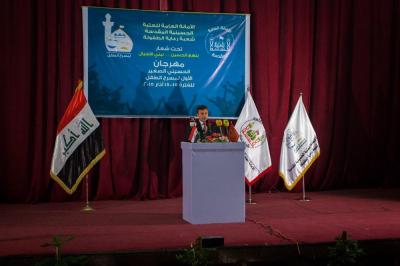 بعدها جاءت كلمة السيد محافظ كربلاء المقدّسة الأستاذ عقيل الطريحي والتي استشهد فيها بمقولةٍ للفنانين (إنّ الحياة مسرحٌ كبير) مؤكّداً على أنّ من يخلد في هذا المسرح هو الذي انتمى للمنهج الذي لا يغيب، وهو منهج الإمام الحسين(عليه السلام)، والذي وُلِدَ يوم استشهاده في العاشر من محرم الحرام في واقعة الطف الخالدة.