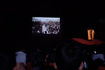 مؤكّداً: "إنّ المسرح الحسينيّ هو أحد الشعائر الحسينيّة التي هي مدرستنا وننتمي لها ونتزوّد منها لمواجهة هذه الحياة في كلّ تحدّياتها، فتحدّي إرهاب اللانظام البائد كان بشعار (يا حسين)، وتحدّي الأوضاع التي مرّت بالعراق بعد (2003) أيضاً كانت بشعار (يا حسين)، وها نحن نعيش اليوم تحدّياً كبيراً في مواجهة هجمةٍ شرسةٍ على بلدنا العزيز لم نستطع أن نواجهها إلّا من خلال شعار (يا حسين).