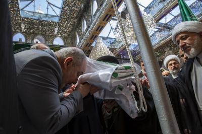 Mukaddes Hz. Abbas (a.s.) Türbesi, geçen hafta Müminlerin Emiri'nin (a.s.) Velayet Sancağı'nı Mukaddes Hz. İmam Ali (a.s.) Türbesi'nden teslim aldı. Bu sancak daha önce Irak'taki diğer mukaddes mekânlara da teslim edilmişti.