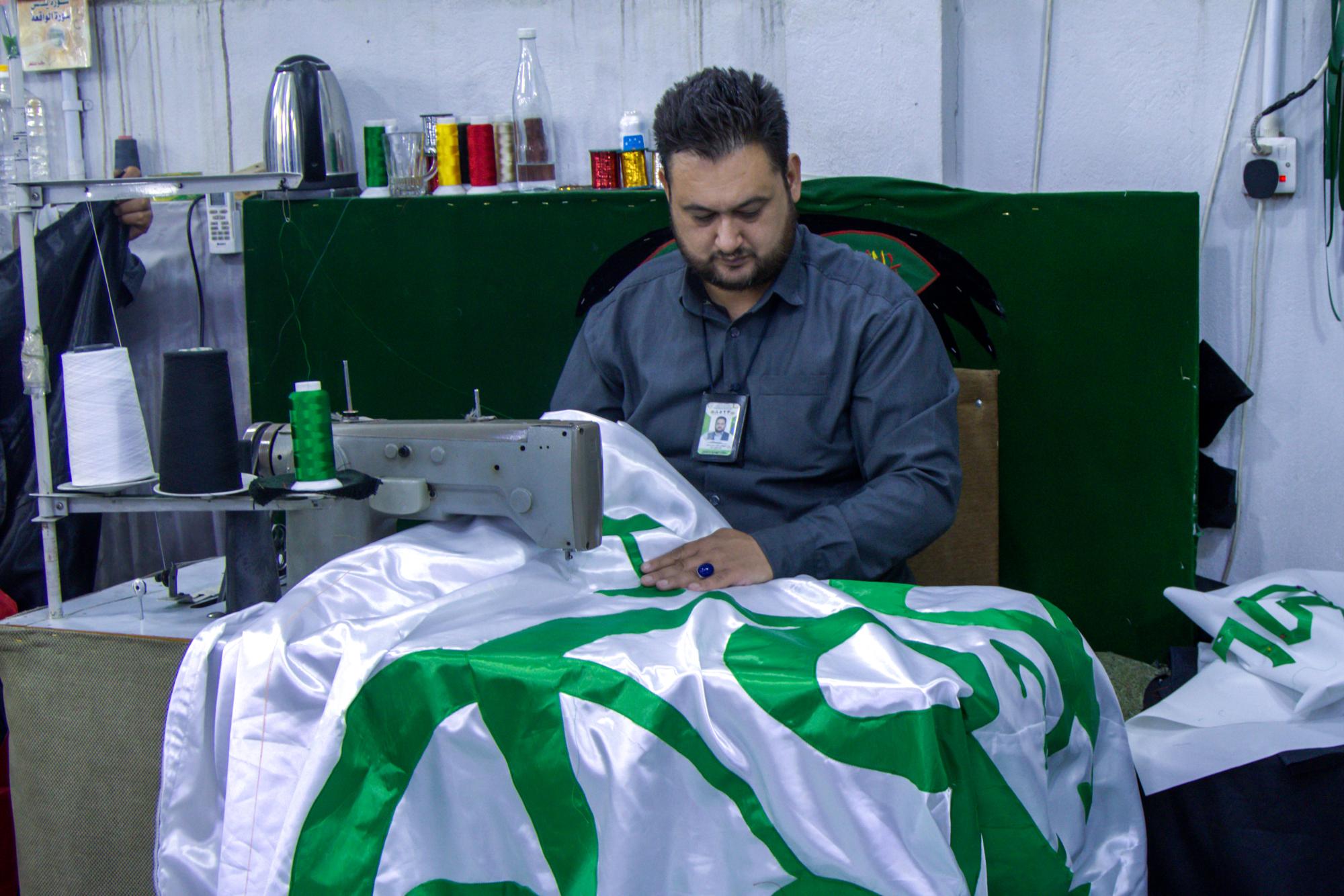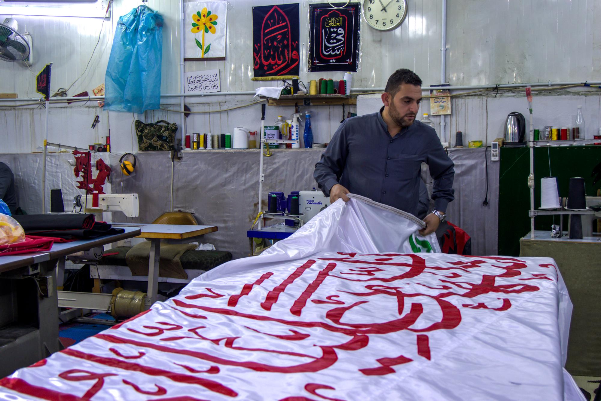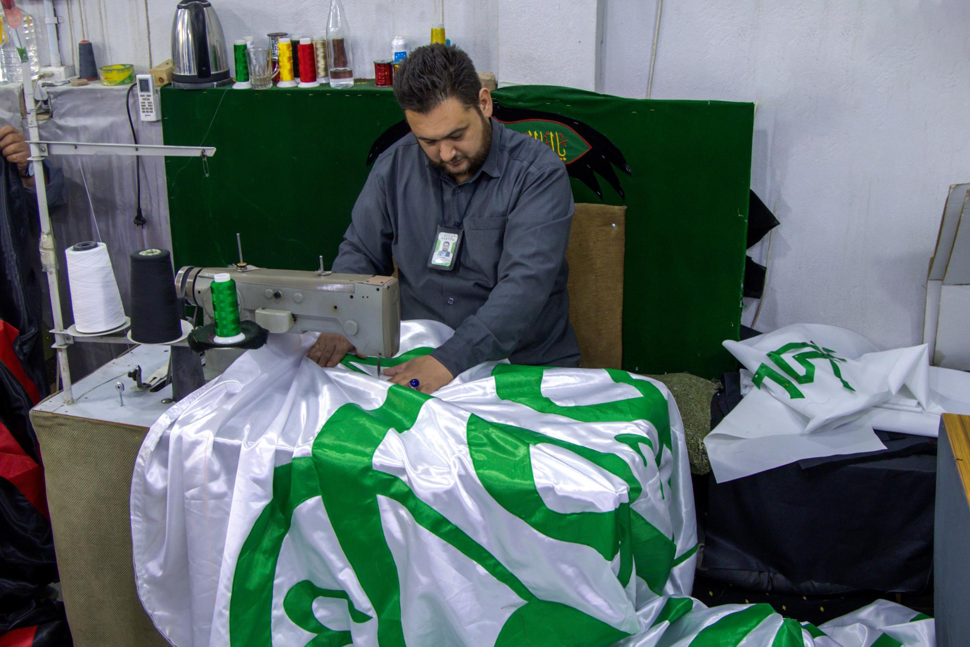 وتابع أنّ "من ضمن الأعمال الموكلة إلينا، هي خياطة قطعة كبيرة ذات قياسات 13 متر في 6 متر، ستُعلق في باب قبلة أبي الفضل العباس (عليه السلام)".