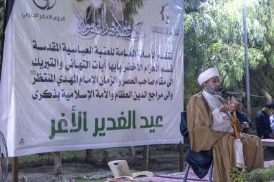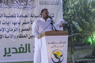 وقال رئيس قسم الحزام الأخضر الجنوبي التابع للعتبة المقدسة السيد ناصر حسين، إنّ "العتبة العباسية المقدسة وضمن سلسلة محافلها بهذه المناسبة، أقامت احتفالية مركزية في واحات الحزام الأخضر بمناسبة ذكرى عيد الغدير الأغر".
