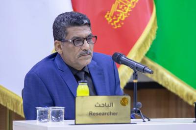 ناقش الدكتور حامد معن عامر من وزارة التربية العراقية بحثه الموسوم "المسكوكة القرآنية المركبة، مقاربة تداولية مدمجة في الخطاب الحسيني - محطة الصفاح أنموذجًا".
