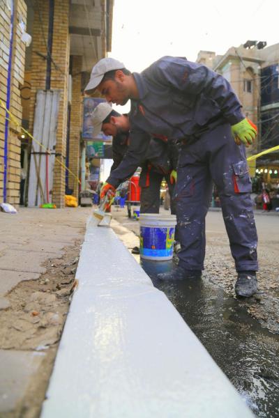 پرسنل قسمت نگهداری مهندسی در آستان مقدس حضرت عباس علیه السلام اقدام به رنگ آمیزی جداول و پیاده روهای پیرامونی حرم مطهر نمودنى.