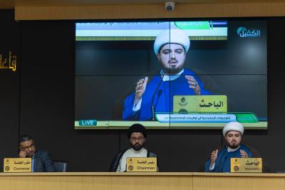 قدّم الباحث الشّيخ منتظر الواعظ من الحوزة العلميّة في مدينة قمّ المقدّسة في إيران، ورقة بحثيّة بعنوان (التّوجيهات الاجتماعيّة في توقيعات الإمام الحجّة -عجّل الله تعالى فرجه الشّريف-).