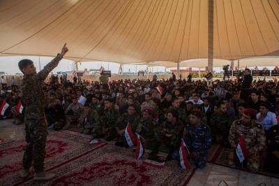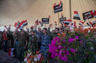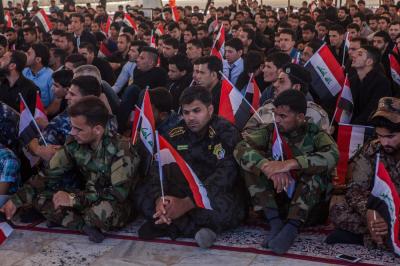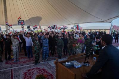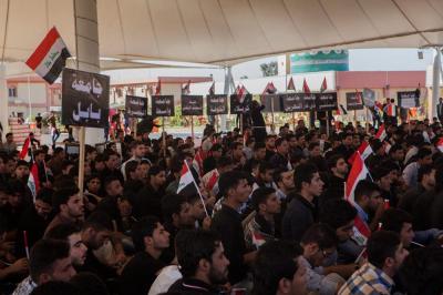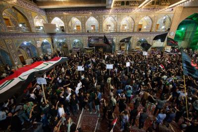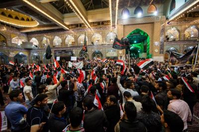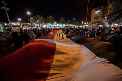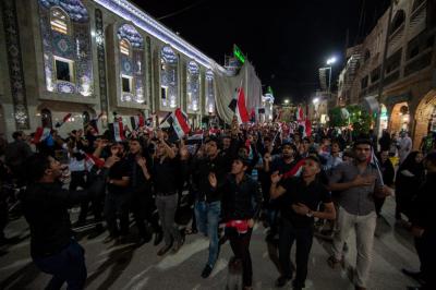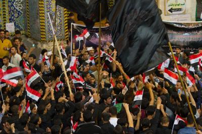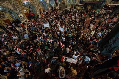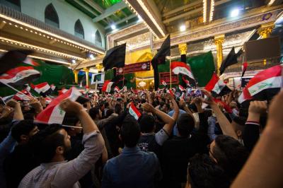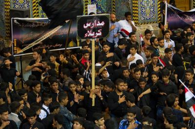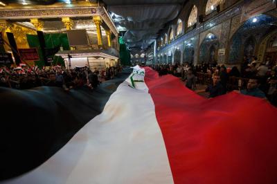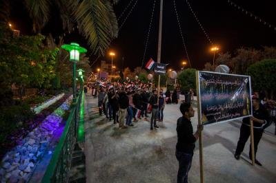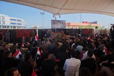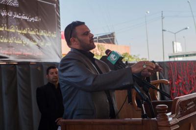 The second part of this condolences program was after the Maghreb and Isha' prayers, the crowds lined in groups each of them representing his own university leaded by those who are bearing the banners, walking from the shrine of Lady Zaynab (peace be upon her) towards the shrine of Aba Al-Fadl Al-Abbas (peace be upon him) accompanied by students bearing the Iraqi flag chanting poems that express their sadness for this tragic and painful anniversary and also their loyalty to the Imam of the Time and Advent (may Allah hasten his reappearance). The program was concluded by Condolence Majlis (lamentation) held at the holy shrine of the Master Aba Al-Fadl Al-Abbas (peace be upon him) led by the radood Hussein Aqeeli.