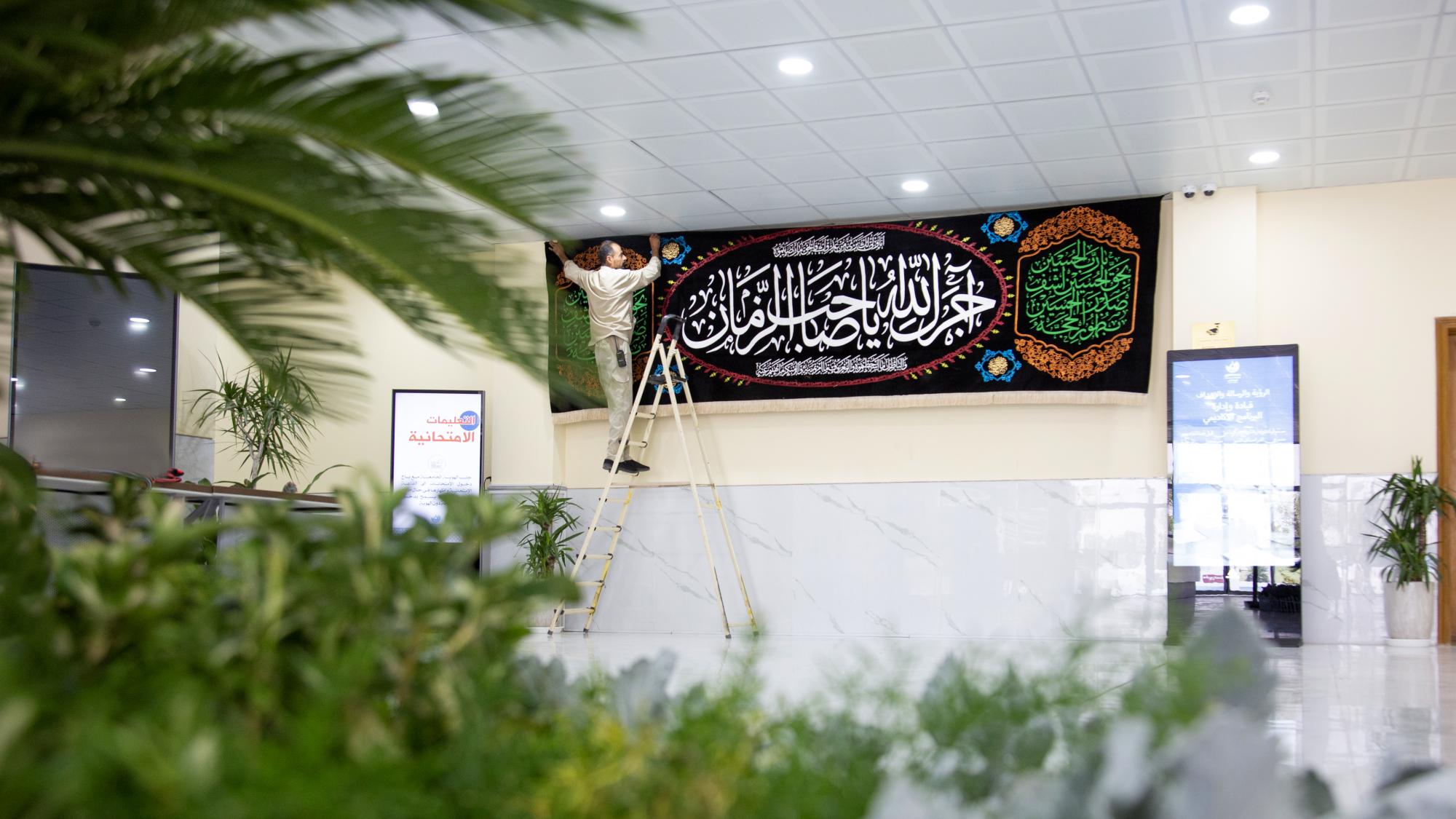 یونیورسٹی میں مینٹیننس ڈویژن کے انچارج انجینئر ہانی عبدالوحید نے کہا، "ڈویژن کے تکنیکی عملے نے محرم الحرام کی آمد کے ساتھ ہی یونیورسٹی میں سیاہ چادریں اور عاشورائی بینرز آویزاں کرنا شروع کر دیے تھے۔"